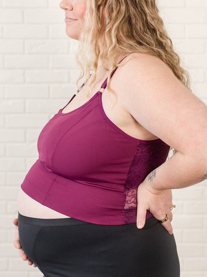 Feel your best in The Amelia nursing cami and hands-free pumping bra. This comfortable nursing and pumping bra grows with you to help you on your nursing journey. The Amelia comes in a variety of styles to meet your needs including an active performance racerback that doubles as maternity swimwear, a full-length nursing tank top, a nursing bralette, and a lace nursing cami version. Discover the comfort and function you long for with the Amelia nursing and pumping bra in standard sizes, busty nursing bra sizes, and as a plus size maternity bra up to 4X. Explore the Amelia Collection.