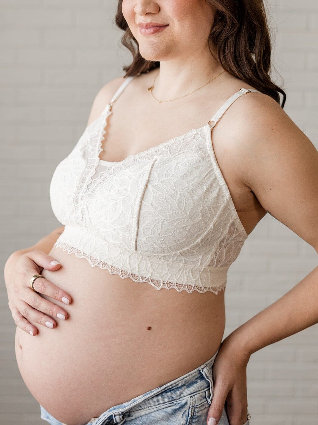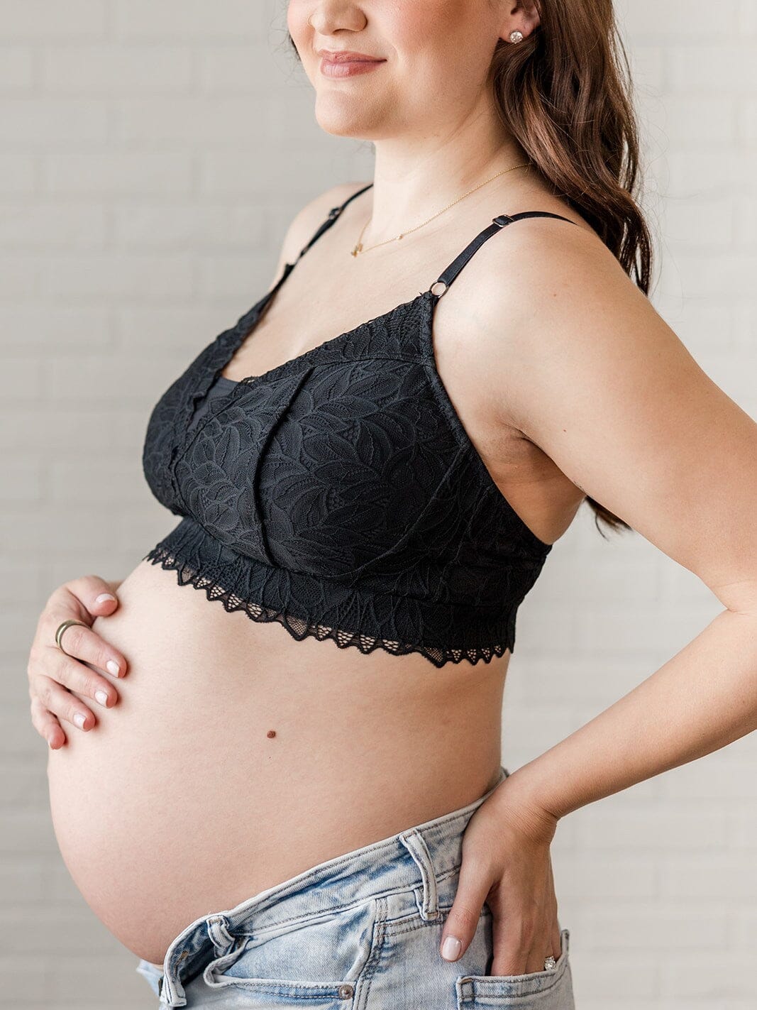 The Riley is the maternity lingerie to compliment your glow at your pregnancy photoshoot. This sexy maternity bra is designed to look like your favorite pre-mom era lingerie and add a spark back to date night. This is the maternity lingerie every mom deserves to elevate your pregnancy through the postpartum experience. Get the attractive maternity bra that supports a breathtaking new you as it flexes to grow and change with your body. Available in standard sizes and plus-size maternity bra sizing up to 3X.